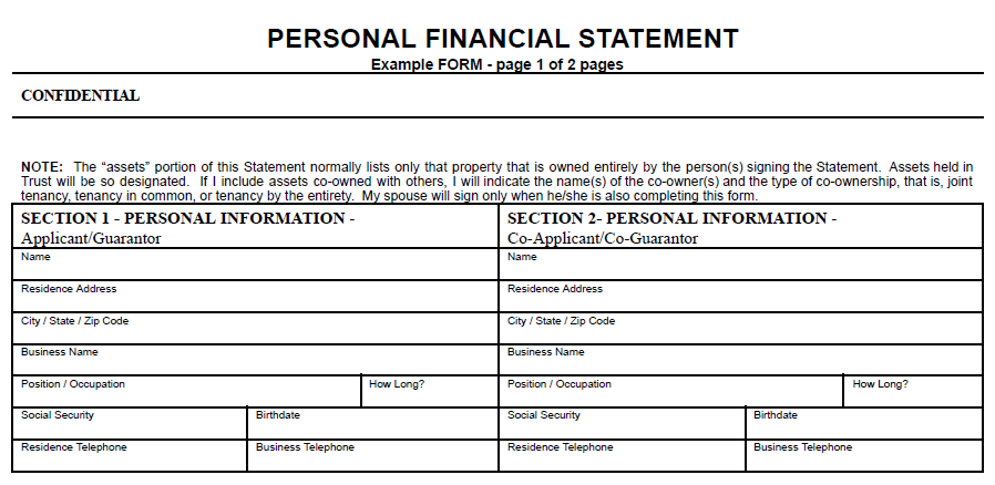 Personal Financial Statement (PFS) Having a PFS on hand will decrease barriers to the seller and through the seller’s broker - many will ask for one in their own format; most will accept your personalized version as long as it covers the basics.